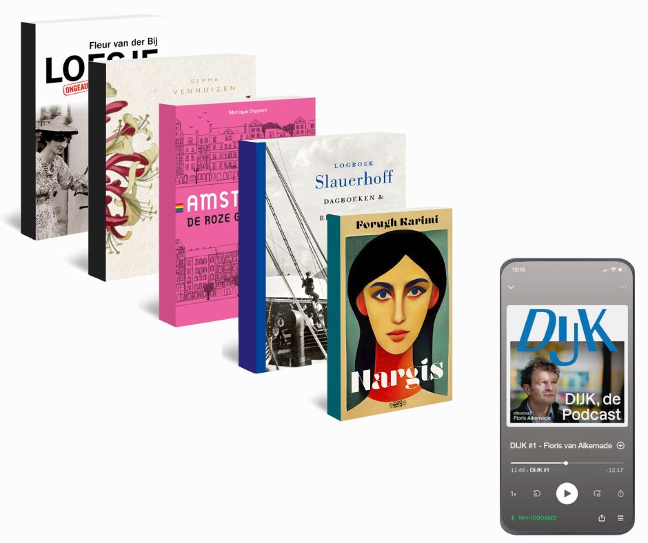 “Steunt het Cultuurfonds ook de letteren? Jazeker! In deze 2e editie van Lezen & Luisteren tip ik vijf bijzondere titels en één podcast. We luisteren naar DIJK – de podcast over nieuwe waterverhalen in Wieringerwerf, ontdekken het verhaal achter het fenomeen Loesje in Loesje, de biografie en maken kennis met de Brabantse Book Prent-winnaar Nargis. We duiken in de queer geschiedenis van onze hoofdstad in Amsterdam: de roze geschiedenis, bladeren door het schitterend geïllustreerde Hemelsleutel over de rijkdom van inheemse flora, en reizen mee met dichter-scheepsarts Slauerhoff in Logboek Slauerhoff. Een editie vol verhalen die je laten luisteren, kijken én opnieuw waarderen wat er om je heen is.”